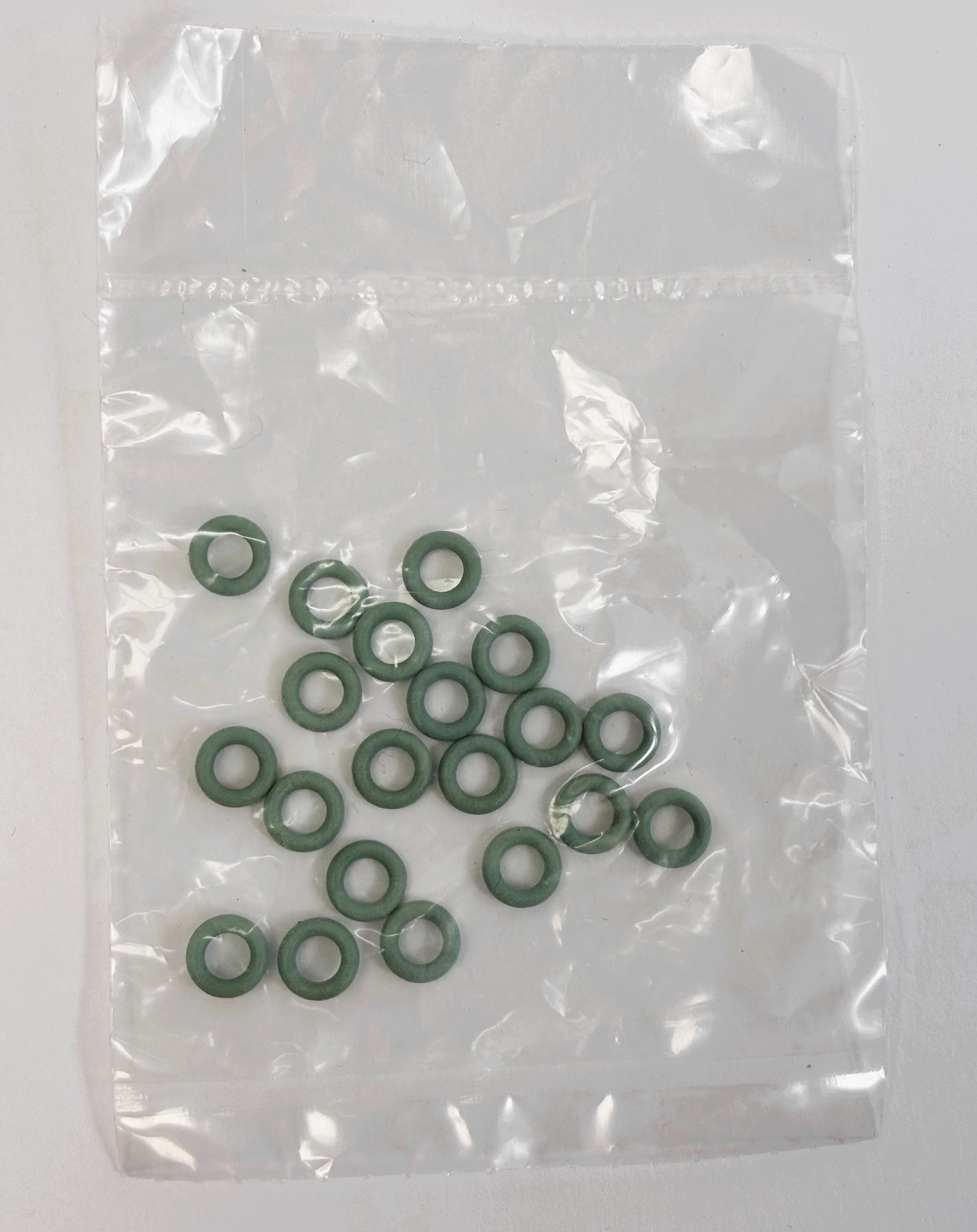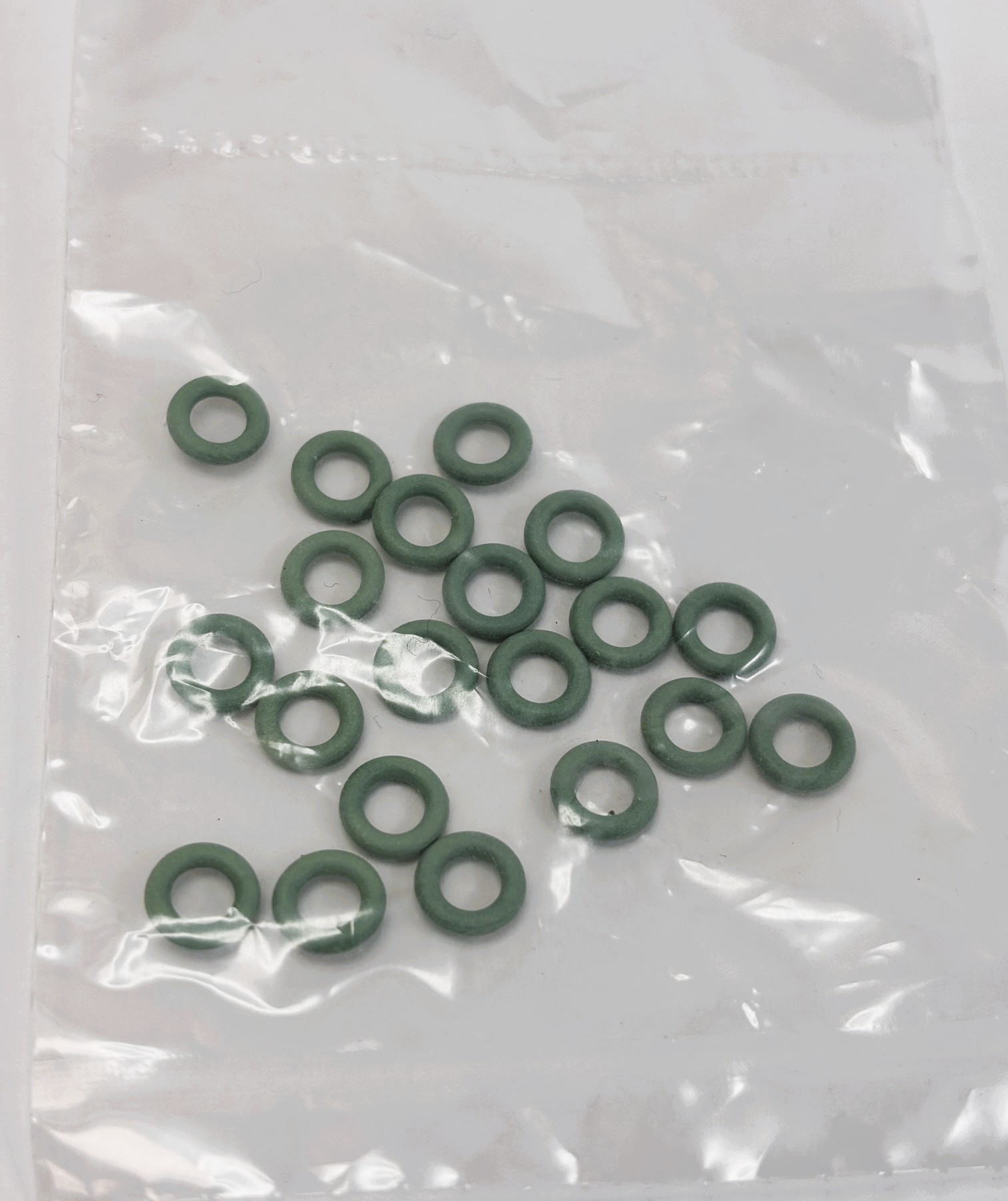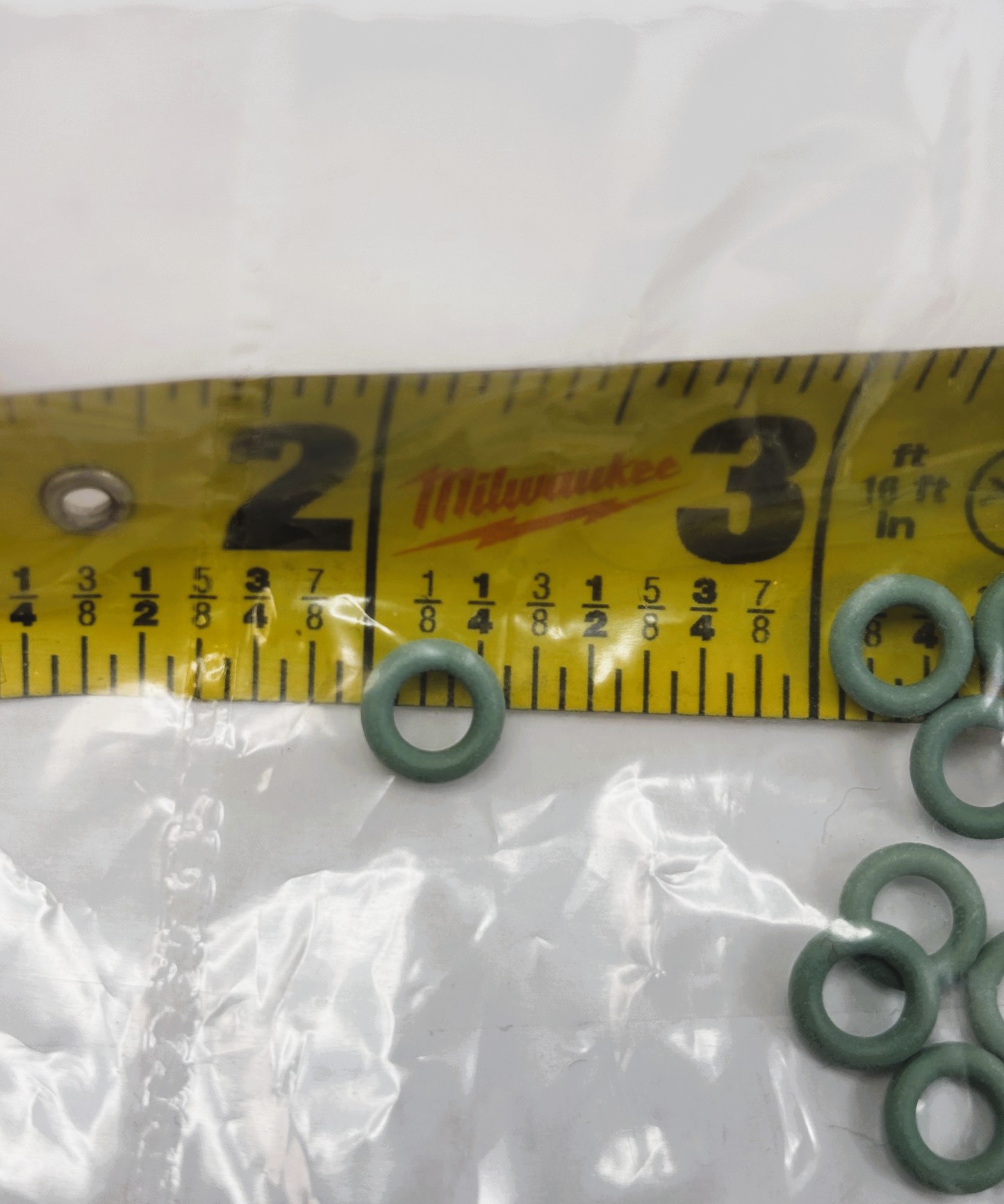 PN#16-4204  SKU#24817  Brand: Truck Air Parts. Size: #4 O Ring. Green HNBR O-ring primarily used in automotive A/C systems, specifically for the capillary tube application in some GM vehicles. Durometer: Generally has a hardness of 70 Shore A, offering good flexibility and durability.
