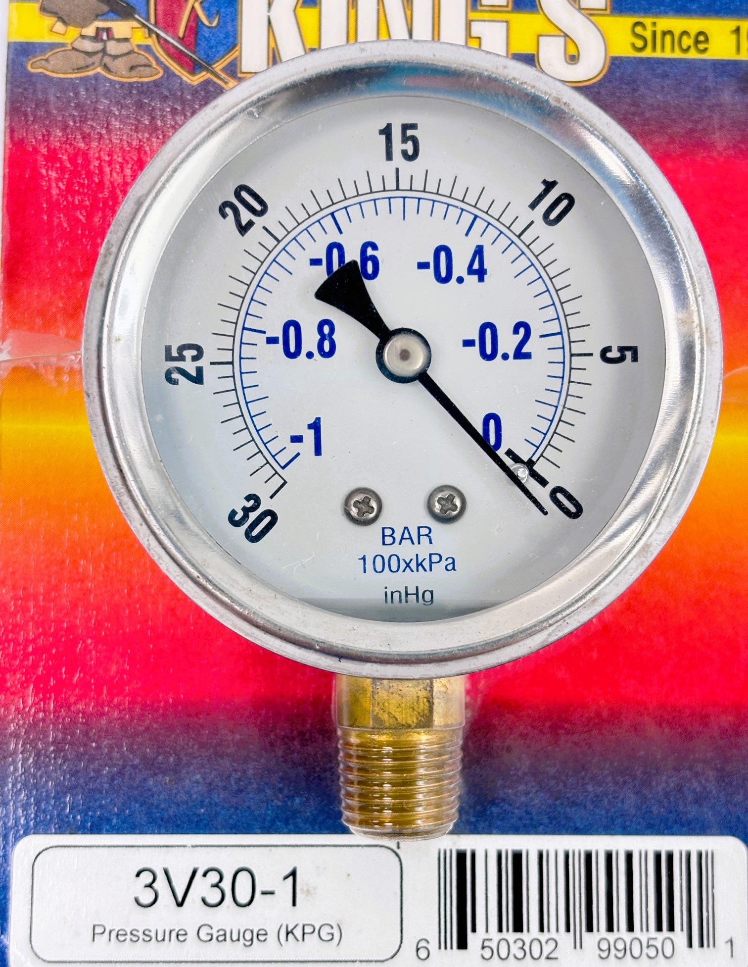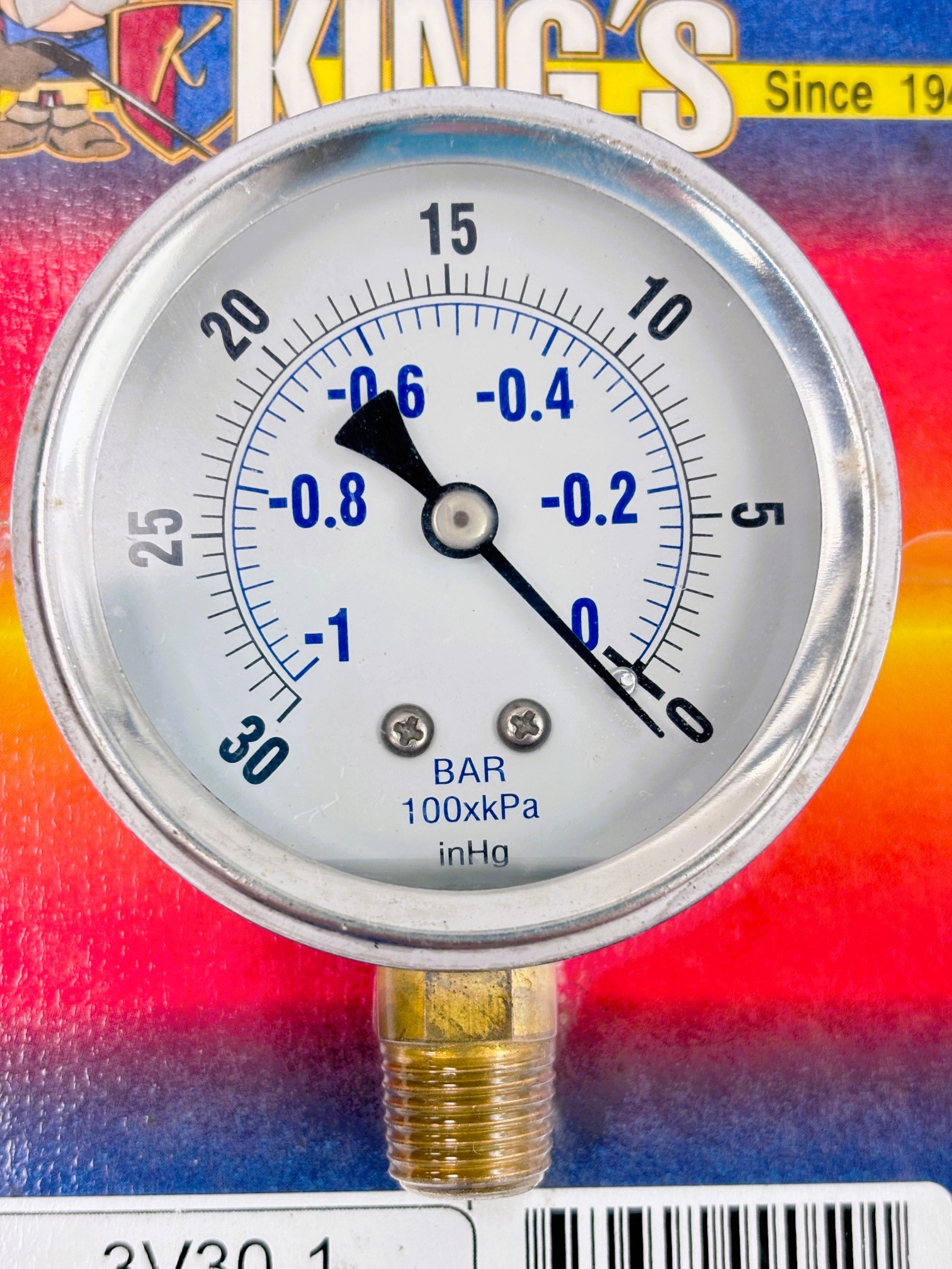 PN#3V30-1 SKU#4 Brand: Valley Industries. Dial Diameter: 2 1/2 in. Connection Location: Bottom. Application: Compressors, Hydraulics, Machinery, Motors, Pneumatics, Pumps. For Oxygen Service: No.