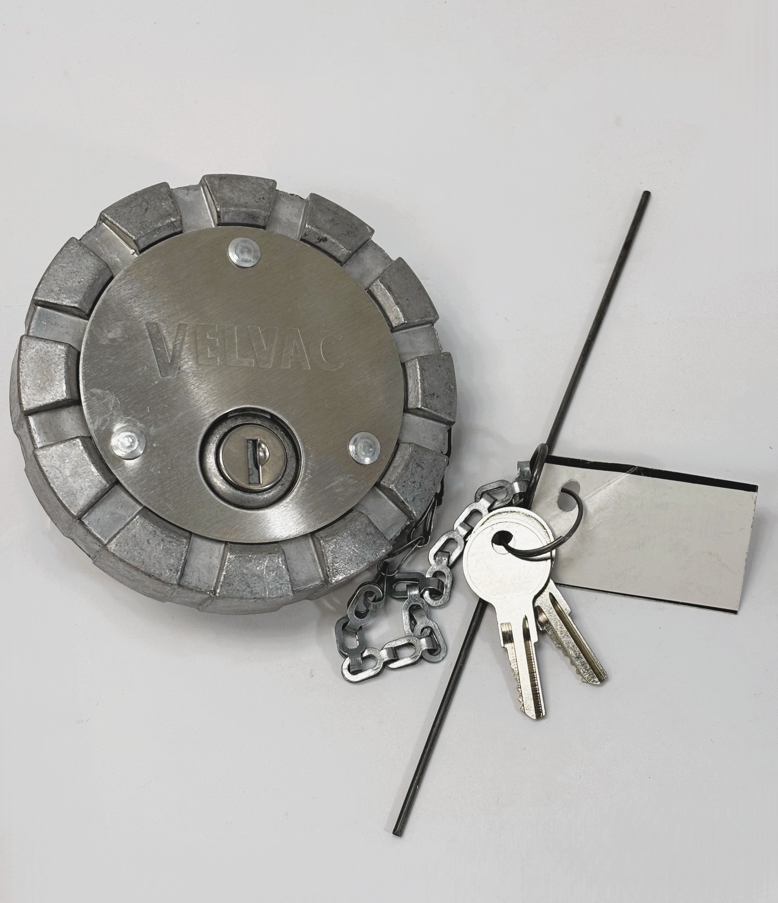 PN#600183-6 SKU#12889 Aluminum Locking Fuel Cap. Female, Vented, 3″ Nominal Size, 8 Threads Per Inch. Nominal Size: 3″. Threads Per Inch: 8. Across Threads – Filler Neck (inches): 3-7/16″. Across Threads – Cap (inches): 3-3/8″. Safety chain and crossbar are standard. Patented Loc-Gard on locking cap protects against moisture and contaminants (U.S. Patent No. 4,706,841).
