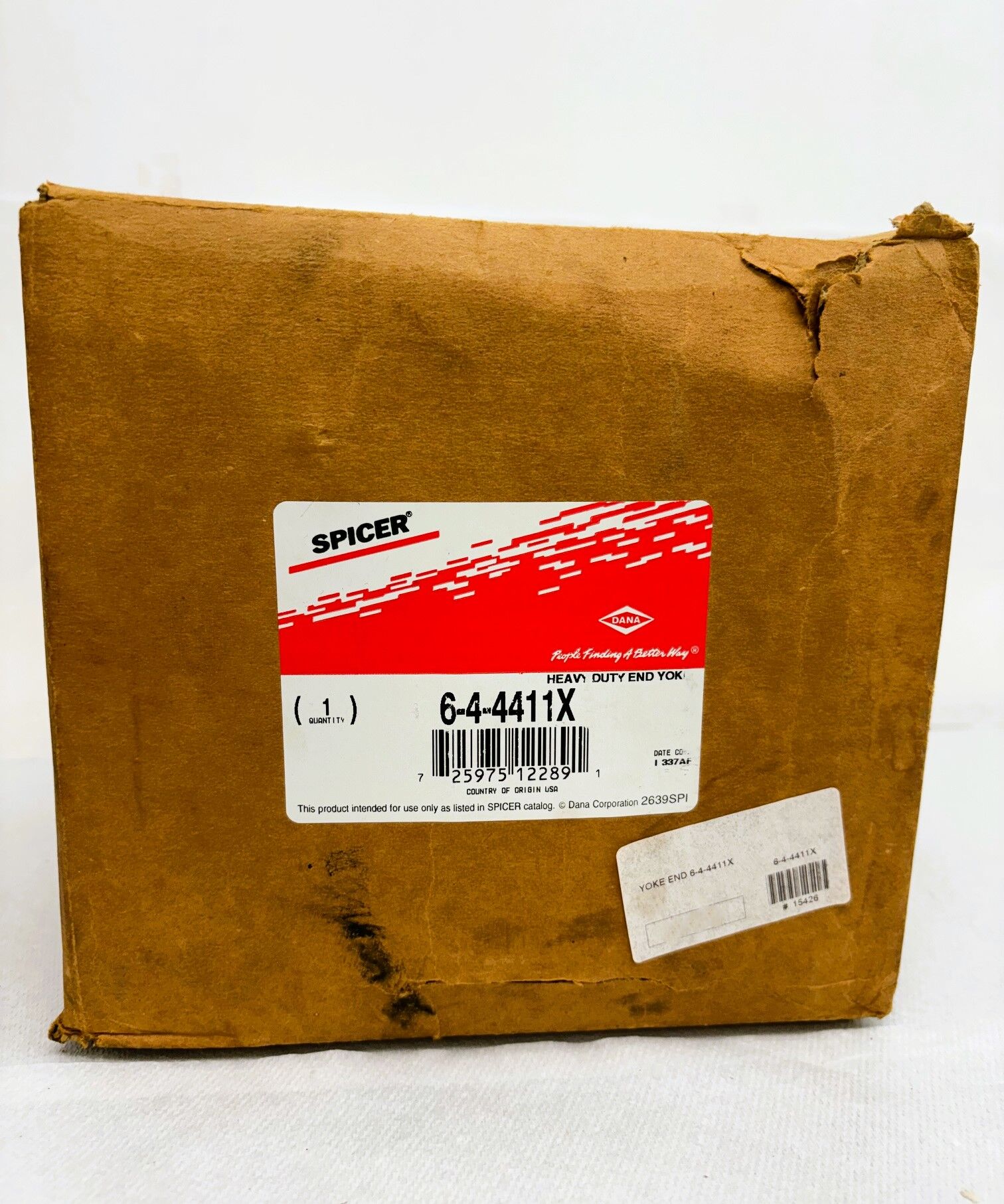PN#6-4-4411X SKU#15426 Brand: Spicer. Series: 1710. Invoice: END YOKE ASSY. Spline Count: 10. Yoke Style: BP. Hub Diameter R: 3.000. C/L To End Hub S: 6.062. Type: Splined Hole. Outside Yoke Dimension (In) E: 6.094. Yoke Bearing Dimension (In) D: 1.938. Major Diameter: 2.250. Involute Spline: N. Length Thru Hole Q: 3.000. C-Bore Depth: 0.250. Includes Slinger/Plug: Y. Assembly: Y. Material: Steel.