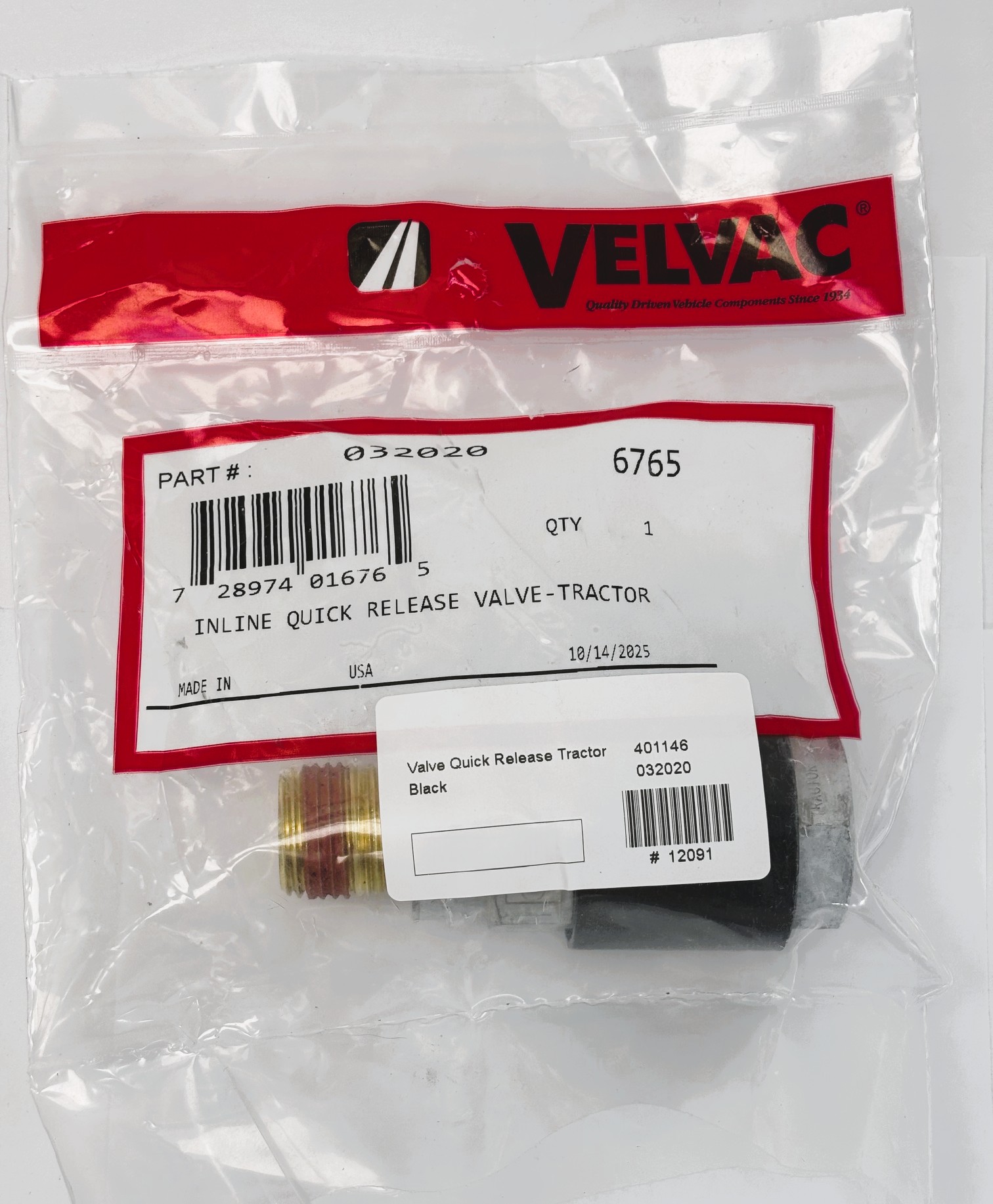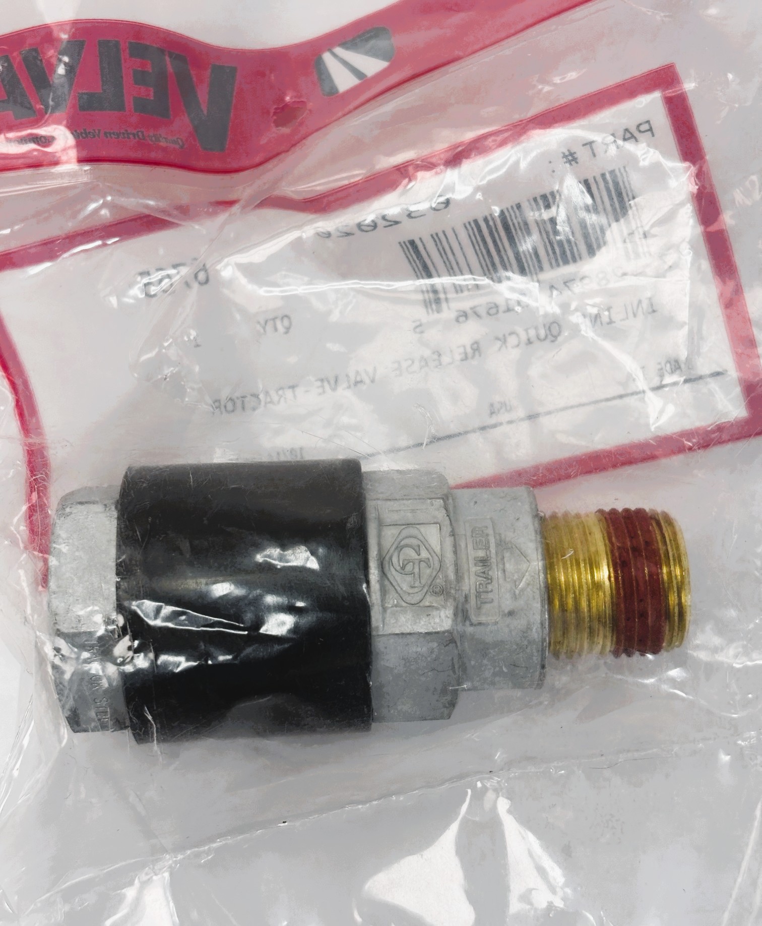 PN#032020 SKU#12091 In-Line Quick Release Valve – Tractor. 1-1/2″ diameter x 3-1/2″ long, Mounts at Tractor Gladhand. Speeds up release of trailer service brakes when installed on service side gladhand. Speeds up release of trailer parking brakes when installed on emergency side gladhand. Suitable for use on double or triple trailers. Durable zinc die cast bodies. Flow Rate: Forward – 9.0 SCFM at 2 psi; Exhaust – 8.0 SCFM at 2 psi. 1/2″-14 MPT with Vibraseal thread sealer on one end, 1/2″-14 FPT other end. 1-1/2″ diameter x 3-1/2″ long. Made in USA.