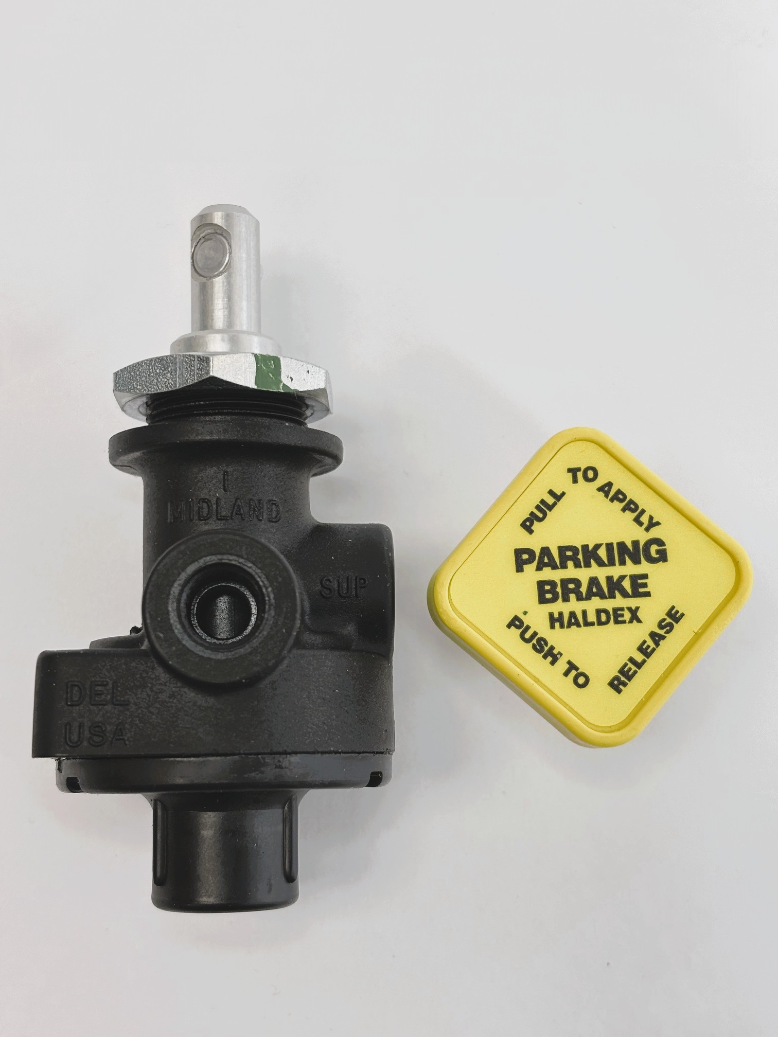 PN#KN20022  SKU#23961  Brand: Haldex. Dash Control Valve. Push-Pull Parking/Emergency Brake Valve. 40 PSI. Delivery Ports (2): 1/8 in NPT. Supply Port (1): 1/8 in NPT. Exhaust Port (1): 1/8 in NPT. 0.38 in diameter neck. Made in USA.