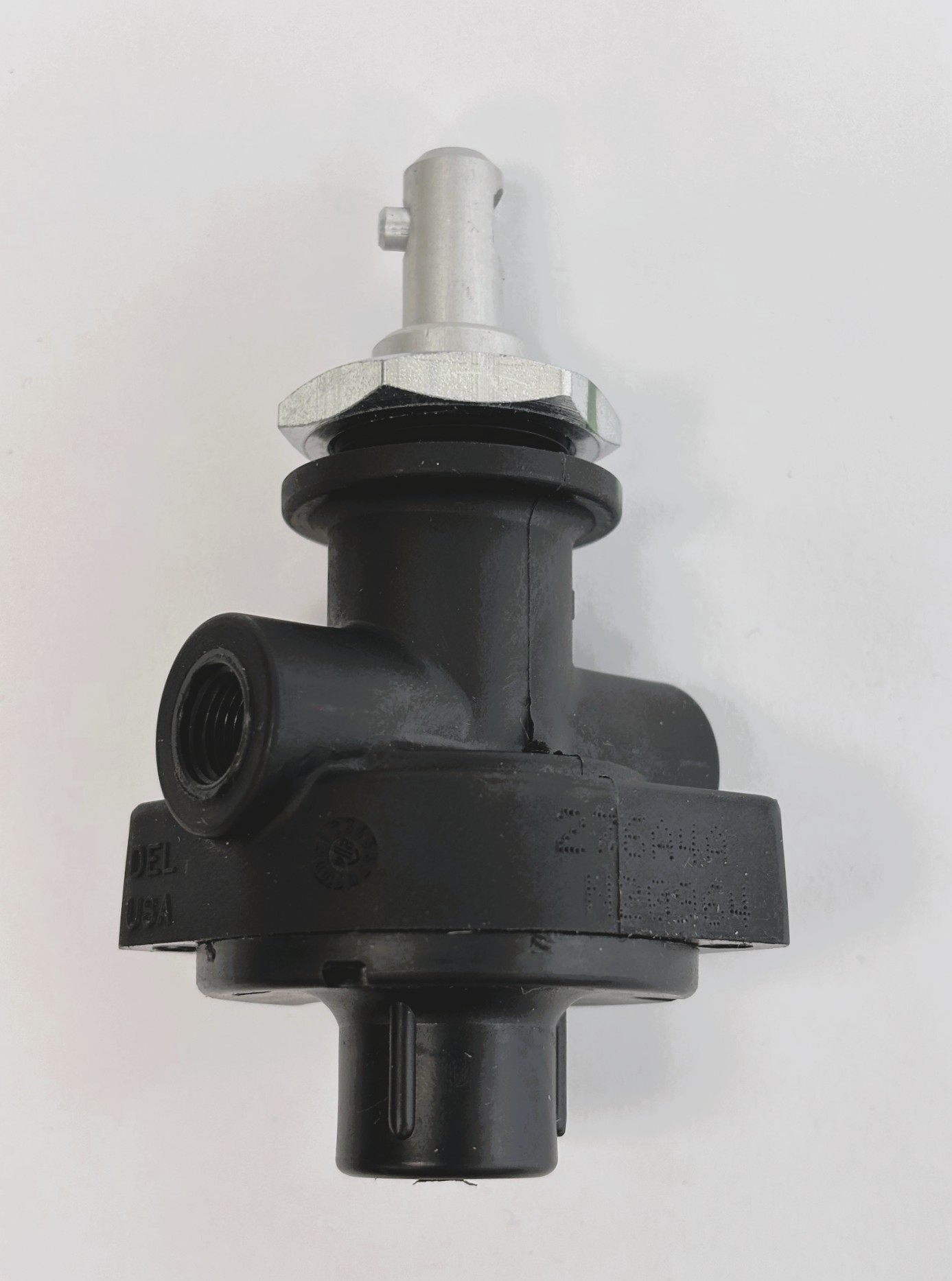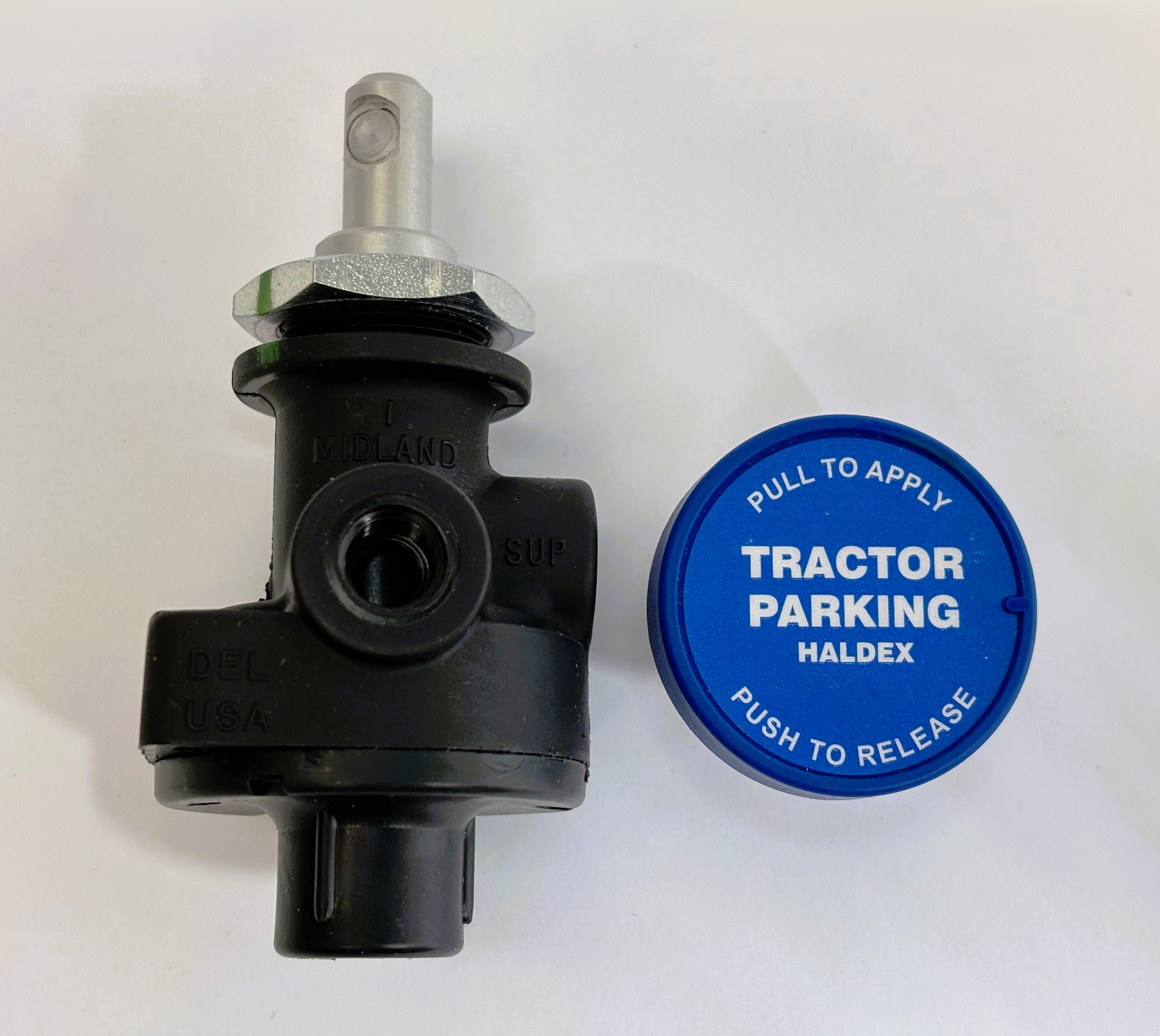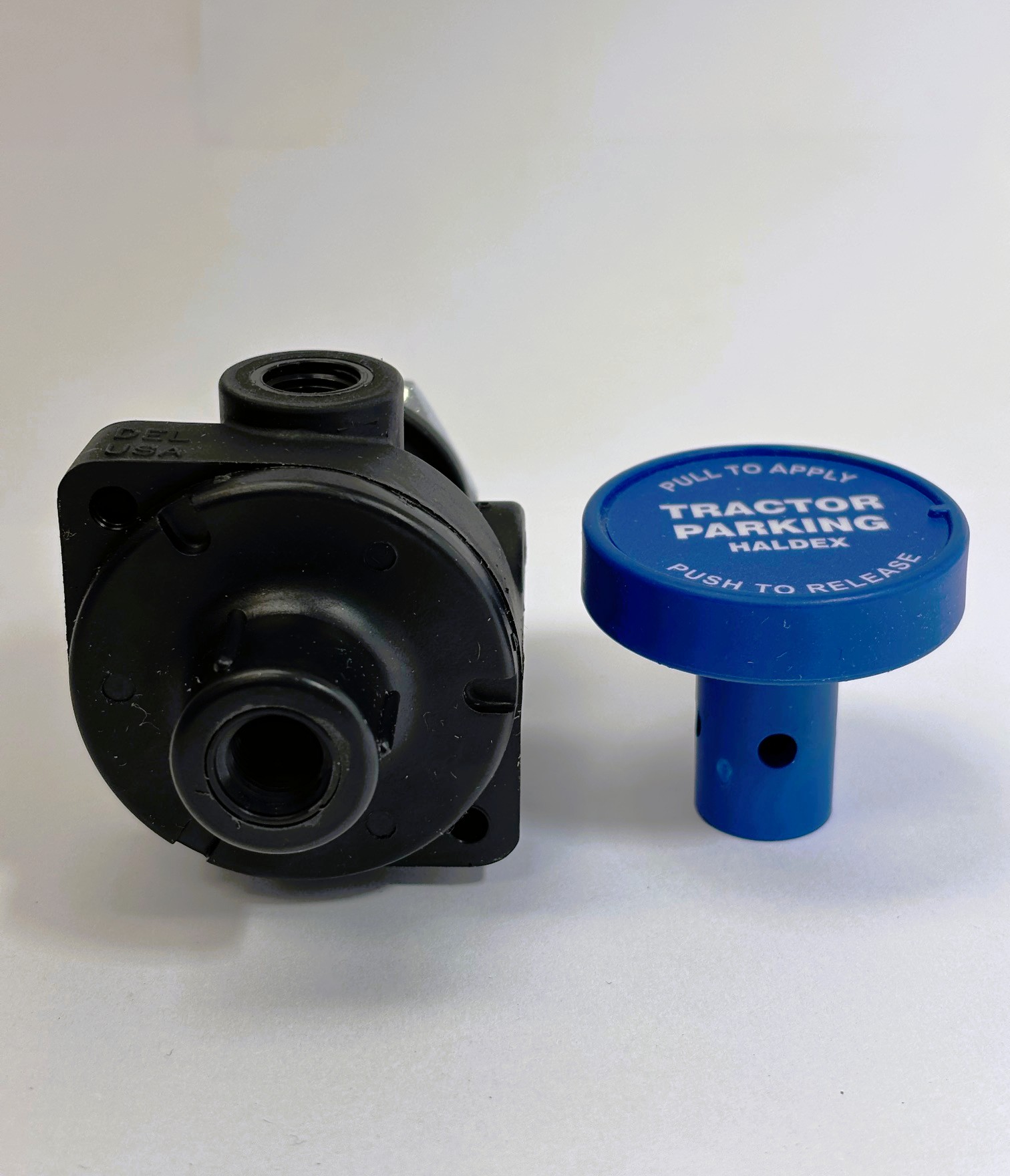 PN#KN20035 SKU#23714 Brand: Haldex. Push-Pull Tractor Parking Valve. Delivery: (2) 1/8: PT. Supply: 1/8″ PT. Exhaust: 1/8″. Bulkhead mount, requires 7/8″ mounting hole. Will not stay in half-on/half-off position. Made in USA.
