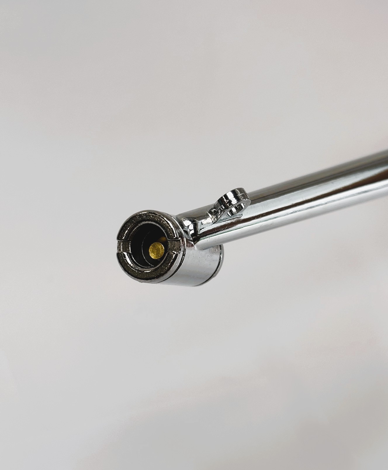 PN#GL-1405 SKU#10189 Inflation Range: 10 – 120 PSI. Accuracy: ± 2 – 3 %. Compatibility: NPT Air Compressor Connectors. Check Pressure & Bleed Valve. Highly Accurate Measurements. Dual-Head Chuck. Compatible with All vehicles.