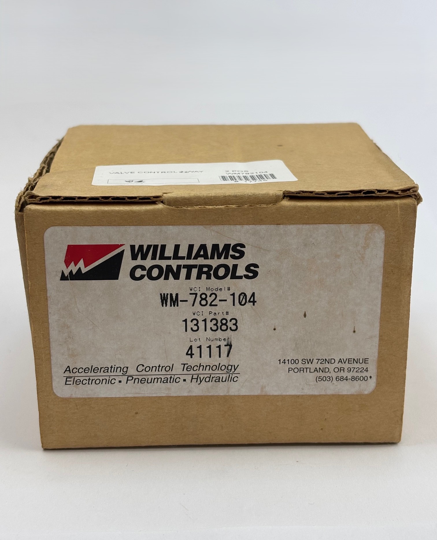 PN#WM-782-104 SKU#17745 Brand: Williams Controls. 2-Position, 4-Way control valve. Port Size: 1/8″ NPT. Operating Temperature: